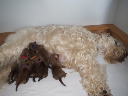 Im Zwinger "Wheatenfilds" wurde Ballyhara's Alroy Adare und Wheatenfields Hannah Montana schon am 12-05-2018 Eltern von 1/4 Welpen