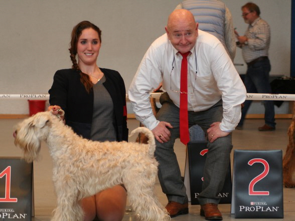 We were on the Clubmacht in the Netherland.We had a realy nice day with our dogs and vistior by the high entering of 73 Wheaten .”Molly” had to step in with number 1 and came back out of the ring with two pokals and a ribbon.She was Best Baby from the Show:) In a big male youthclass “James” Ballyhara’s Alroy Adare did a realy great job and endet up First .Our boy “Rudi”was back to normal and could win the Intermediumclass .Congrats to the owner from“James”